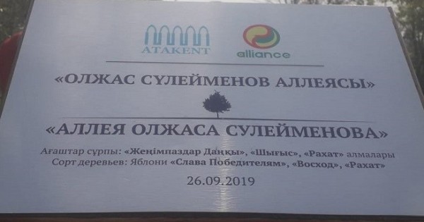 باس قوسۋدان كەيىن «اتاكەنتتە» ولجاس سۇلەيمەنوۆ اتىنداعى اللەيا اشىلدى. اللەيانىڭ اشىلۋ سالتاناتىنا دەپۋتاتتار, قوعام قايراتكەرلەرى, فيلوسوفتار, اكادەميكتەر, ارحەولوگتار, مادەنيەتتانۋشىلار مەن ەكولوگتار جينالدى. ولار «جەڭىمپازدارعا داڭق», «كۇننىڭ شىعۋى» جانە «راحات» سورتتارىنىڭ 61 ءتۇپ الما اعاشىن وتىرعىزدى.