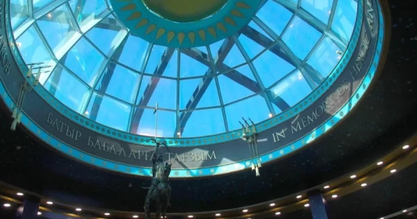 قازاق تاريحىنىڭ قالىڭ قاتپارىنان سىر شەرتەتىن شەجىرەلىك سۋرەتتەرمەن ارلەنگەن بۇل كەشەن بابالاردىڭ ەرلىك جولىنا قويىلعان ەسكەرتكىش سياقتى. كيىز ءۇي بەينەلى مەموريالدى كەشەننىڭ ءىشى-سىرتى اق ءمارمار تاسپەن قاپتالعان. كوككە ۇمتىلعان بيىك ستەللا بولاتتان قۇيىلىپ, سۇيىرلەنە بىتكەن كۇمبەزدى شاتىرعا ۇيلەسىپ تۇر.