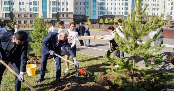 مەكتەپتىڭ يننوۆاتسيالىق بلوگى بويىنشا ەكسكۋرسيادان كەيىن مينيستر اعاش وتىرعىزۋعا قاتىستى.