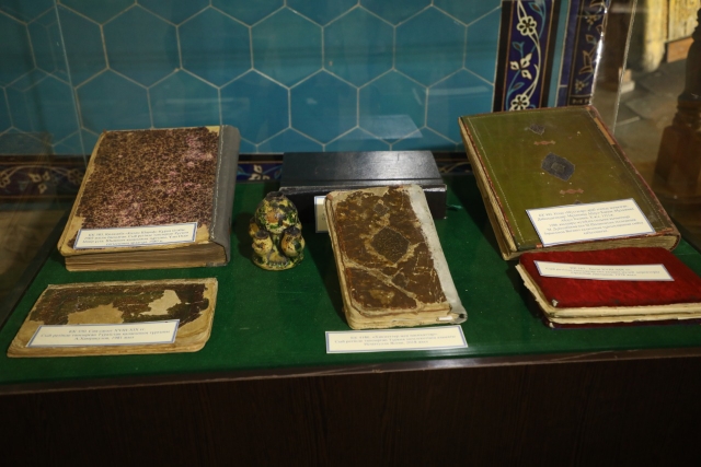 ولاردىڭ قاتارىندا قاراكەرەي قابانباي باتىردىڭ قانجارى, جەرگىلىكتى حالىقتان جينالعان جانە جىل سايىن مۋزەيگە سىي رەتىندە تاپسىرىلىپ جاتقان قۇندى دۇنيەلەر بار. مۋزەي اشىلعان 1978 جىلى 300-گە جۋىق ەكسپونات قانا بولعان ەكەن. كوپتەگەن جادىگەرلەر سول كەزدەگى مادەنيەت ءمينيسترىنىڭ ورىنباسارى ءو.جانىبەكوۆتىڭ باستاماسىمەن جەرگىلىكتى حالىق اراسىنان جينالعان. تاريحي دەرەكتەرگە كوز جۇگىرتەر بولساق, مۋزەيگە سىي تارتۋ ايگىلى قولباسشى ءامىر تەمىر زامانىنان باستاۋ الادى. قولباسشىنىڭ بۇيرىعىمەن قۇيىلىپ, كەسەنەگە سىيعا بەرىلگەن, حالىق ونەرىنىڭ لاعىل مارجاندارىنىڭ قاتارىنا جاتاتىن, التىن-كۇمىس جالاتىلعان 6 دانا شىراعدان مەن تايقازان, لاۋحا سىندى جادىگەرلەر سونىڭ ءبىر دالەلى.