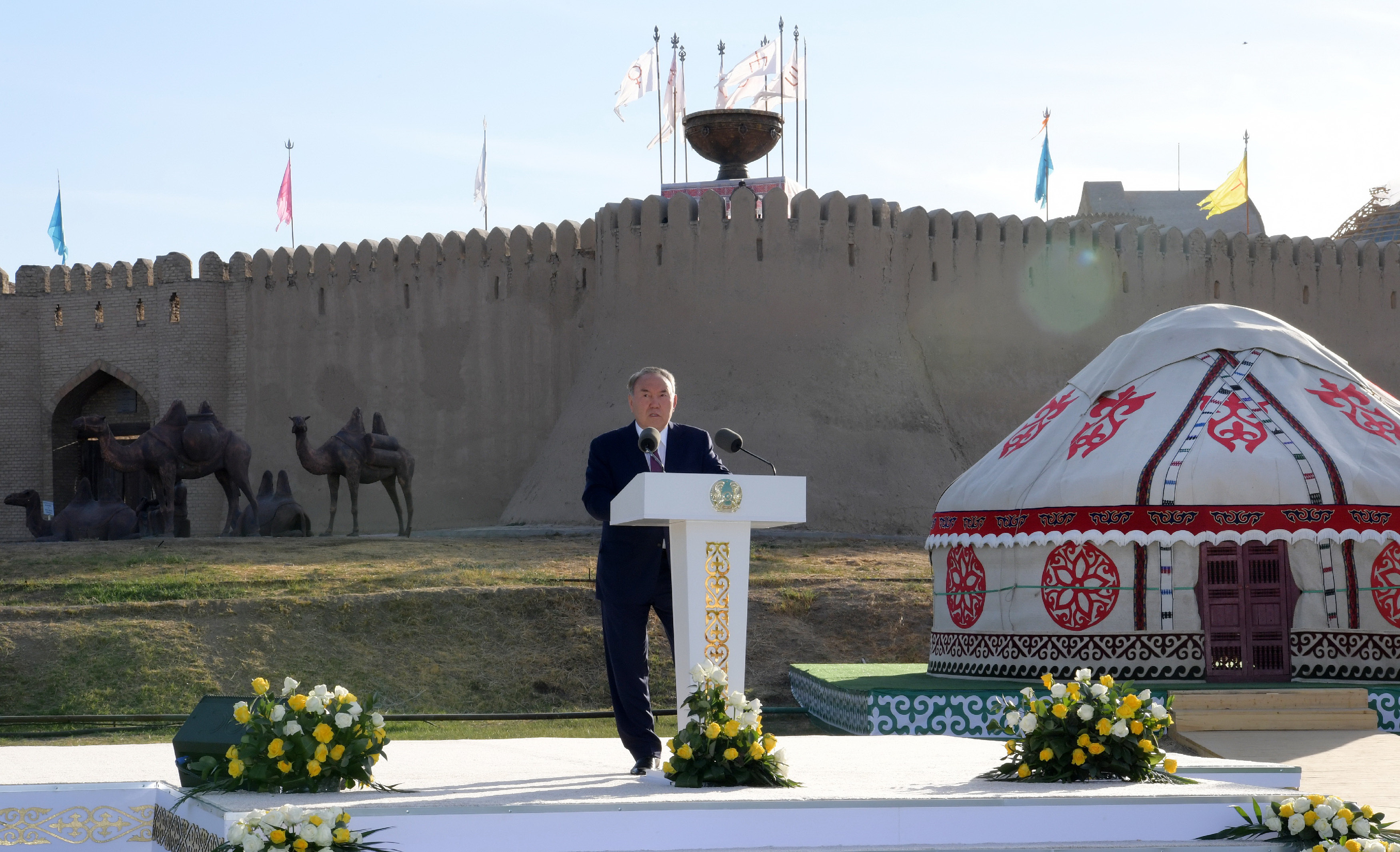 2000 جىلى تۇركىستان قالاسىنىڭ يۋنەسكو دەڭگەيىندە اتاپ وتىلگەن مەرەيتويى سالتاناتىندا قازاقستان پرەزيدەنتى ن.ءا.نازارباەۆ كوپشىلىك الدىندا مازمۇندى بايانداما جاسادى.
