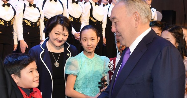 بالالار شىعارماشىلىق ۇجىمدارى قازاقستاننىڭ تۇڭعىش پرەزيدەنتىنە بىرنەشە مۋزىكالىق قويىلىم كورسەتتى», دەلىنگەن حابارلامادا.
