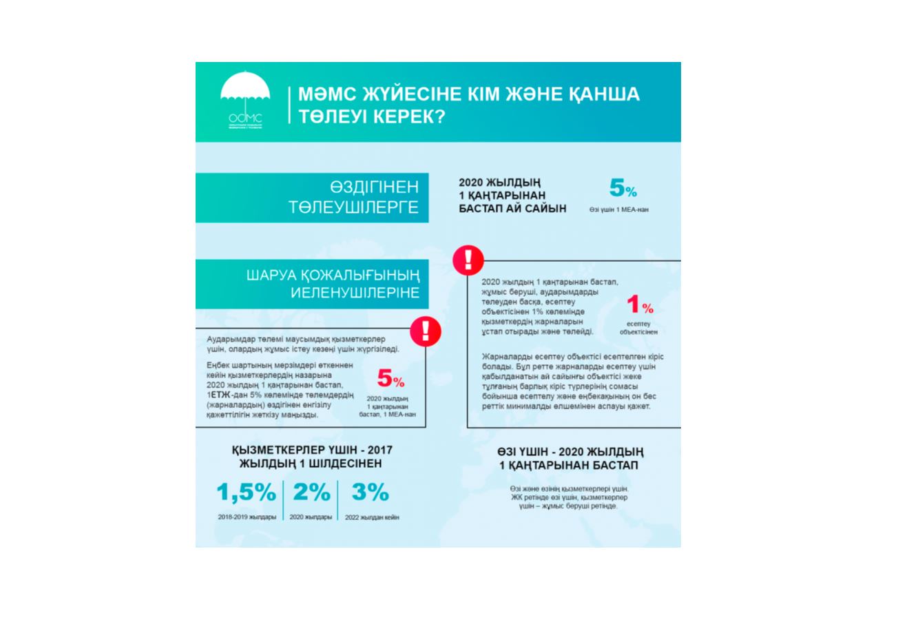 تىلەۋحان ابىلداەۆ اتاپ وتكەندەي, 2020 جىلى وڭتۇستىك استانالىقتارعا ارنالعان مەديتسينالىق كومەككە بولىنەتىن قارجى ءبىر جارىم ەسە نەمەسە 45,5 ملرد تەڭگەگە ارتادى. بيىل قالا بويىنشا تەگىن مەديتسينالىق كومەككە بيۋدجەتتەن 116,8 ملرد تەڭگە بولىنگەن. ال 2020 جىلعا قاراي 160,4 ملرد تەڭگە جۇمساۋ جوسپارلانىپ وتىر. ساقتاندىرۋ جۇيەسىن ەنگىزۋگە دايىندىق باعىتىندا نورماتيۆتىك-قۇقىقتىق بازا جاسالىپ, ءۇش دەڭگەيلى مەديتسينالىق كومەك جۇيەسى بەكىتىلدى, سونداي-اق قاجەتتى اقپاراتتىق جۇيەلەر ىسكە قوسىلعان. سونىمەن قاتار دايىندىق بارىسىندا ءوزىن ءوزى جۇمىسپەن قامتىعان تۇرعىنداردى ساقتاندىرۋ جۇيەسىنە تارتۋ جۇمىستارى دا جۇرگىزىلۋدە. قازىردىڭ وزىندە قور كەلىسىمشارتتار مەن قوسىمشا كەلىسىمدەردى جەدەل اتقارۋ قىزمەتتەرىن ىسكە قوسقان. بيىلعى تامىز ايىنان باستاپ جەكەلەگەن قۇجاتتار ەتسق ارقىلى جاسالۋدا. ونداعى ماقسات – مەديتسينالىق قىزمەتتەردى ساتىپ الۋ جۇمىستارىنىڭ تيىمدىلىگى مەن اشىقتىعىن قامتاماسىز ەتۋ جانە دە جەمقورلىقتىڭ الدىن الۋ. سونىمەن قاتار بۇگىندە ساقتاندىرۋ تولەمدەرى تۇراقتى اۋدارىلماعاندىقتان, حالىقتىڭ 7 پايىزعا جۋىعى ساقتاندىرىلماعان بولىپ سانالادى. دەرەكتەر ەلىمىزدە ءوزىن ءوزى جۇمىسپەن قامتىعان 1,1 ملن ادامنىڭ بار ەكەنىن كورسەتەدى. ناقتى ايتقاندا, رەسمي جۇمىس ىستەمەيتىن, جەكە كاسىپكەر رەتىندە تىركەلمەگەن, ازاماتتىق-قۇقىقتىق كەلىسىمشارت نەگىزىندە قىزمەت كورسەتپەيتىن تۇلعالار. دەسەك تە, ولار ءوز بەتىنشە جارنا اۋدارۋ قۇقىعىنا يە. جارنا مولشەرى ەڭ تومەنگى جالاقىنىڭ 5 پايىزىن قۇرايدى. سونداي-اق بىرىڭعاي جيىنتىق تولەم ارقىلى تولەۋگە بولادى.