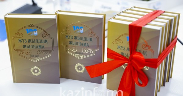 شىن مانىسىندە, 5 تومدىق ء«جۇز جىلدىق جىلناما» باسىلىمى – قاھارمان حالقىمىزدىڭ, بايتاق ەلىمىزدىڭ, بەينەتقور ۇلتىمىزدىڭ, سايىپقىران تۇلعالارىمىزدىڭ, رۋحاني قۇندىلىقتارىمىزدىڭ تاريحىنان تەلەگەي تەڭىز سىر تولعايدى. بۇل ەنتسيكلوپەديالىق سيپاتتاعى شىعارمادا قازاق جۇرتىن قالاي باسقارۋ, ونىڭ تەرريتورياسىنىڭ اۋماعى, رەسەيمەن اراسى, جەر-سۋ يگىلىكتەرىن حالىق كادەسىنە جاراتۋ, شارۋا-كاسىپ, مال باعۋ, ەگىن ءوسىرۋ, قازاق جاستارىنىڭ جايى, الاش قايراتكەرلەرىنىڭ ەلشىلدىك-مەملەكەتشىلدىك ىستەرى, ۇلت مادەنيەتى مەن تاريحى, قازاق رەسپۋبليكاسىنىڭ قۇقىعى تۋرالى دەكلاراتسيا, ءبىلىم بەرۋ ءىسى, ساياسات, اسكەر, سوت, اكىمدىك, قازاق ءتىلى, نەكە, جارمەڭكە, جازۋ تاڭبالار ءمانىسى جونىندەگى تاريحي دەرەكتەر تولىق كورىنىس تاۋىپ, بايىپتى باياندالعان. مۇنىڭ بارشاسى – مەملەكەتىمىزدىڭ شەجىرەسى, ءجۇرىپ وتكەن جولىمىزدىڭ تياناقتى بايانى.