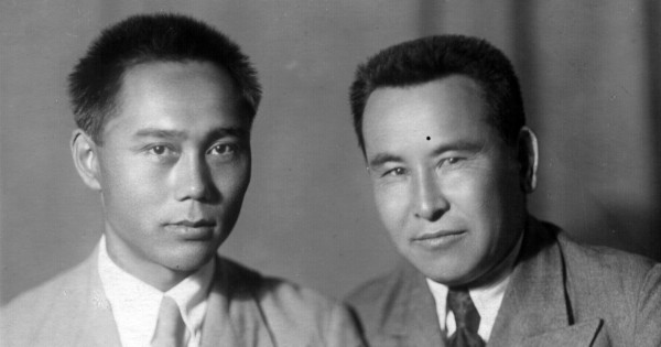 سۋرەتتە: قاسىم ءشارىپوۆ پەن بەيسەمباي كەنجەباەۆ. 1939 جىل, ماسكەۋ (سۋرەت تۇڭعىش رەت جاريالانىپ وتىر)