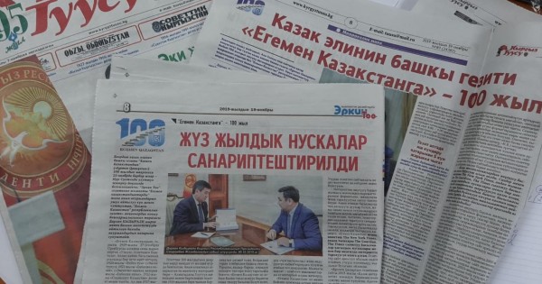 قىرعىز حالقىنىڭ «Egemen Qazaqstan»-مەن داۋىرلەس, بيىل تاريحىنا 95 جىل تولتىرىپ وتىرعان كوشباسشى باسىلىمدارىنىڭ ءبىرى – «ەركين توو» جانە «كىرگىز تۋسۋ» گازەتتەرى ايقارما بەتىن قازاق ءباسپاسوزىنىڭ مەرەيتويىنا ارنادى. باسىلىم باسشىسى دارحان قىدىرالىمەن ساليقالى سۇحبات جۇرگىزىپ, ءجۇز جىلدىق جىلناما تاريحىن باۋىرلاس اعايىنعا كەڭىنەن تانىستىردى. اقجارما تىلەك, اعەدەن پەيىلدەرىن جولدادى.