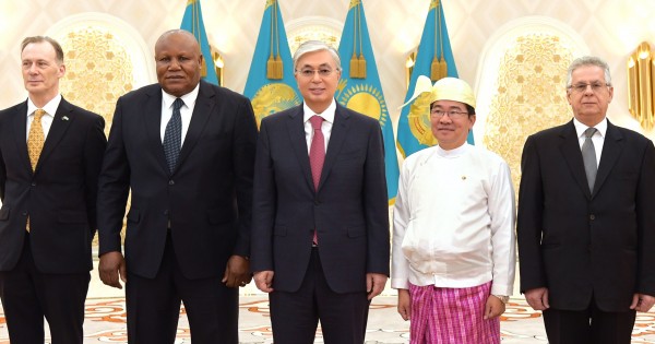 قازاقستان پرەزيدەنتى شەتەلدىك ديپلوماتتاردى قىزمەتتەرىنە رەسمي كىرىسۋىمەن قۇتتىقتاپ, مەملەكەتتەر اراسىنداعى دوستىق قاتىناستاردى ودان ءارى دامىتۋعا دايىن ەكەنىن جەتكىزدى.