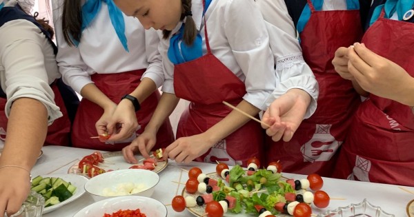 مىنە, وسىلايشا برەند-شەف مارات گالەەۆ 9-11 سىنىپ وقۋشىلارى ءۇشىن 8 اسپازدىق ءدارىسىن وتكىزدى. شەف-اسپازدىڭ شەبەرلىك دارىستەرى بالالار ءۇشىن 2,5-3 ساعات بويى قىزىقتى جانە تۇسىنىكتى ءوتتى. مارات گالەەۆ اسپازدىق كۋرستاردا بالالار اسا قيىندىقسىز ءوز بەتىنشە دايىنداي الاتىن تاعامداردى تاڭداعان. ارينە, جاسوسپىرىمدەر ۇستازدىڭ جەتەكشىلىگىمەن وزدەرى جاقسى كورەتىن تاعامداردى قوسا ازىرلەۋدى ۇيرەنىپ وتىر.
