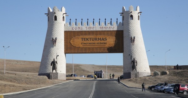 ەجەلگى تاراز قالاسىنىڭ ءتول تاريحىن تولىعىمەن بەينەلەيتىن «تەكتۇرماس» ەتنو-تاريحي كەشەنى تالاس وزەنىنىڭ جوعارعى جاعالاۋىنداعى «تەكتۇرماس» تاۋىنىڭ بيىك تاۋلى بەتكەيىنىڭ 24 گەكتار اۋماعىن الىپ جاتىر. اتالعان تاريحي كەشەن – تاراز وڭىرىندەگى ورتاعاسىرلىق تۇركى ەلدەرىنىڭ قاسيەتتى مەكەنىن كورسەتەتىن, تۇركى تاريحىنان سىر شەرتەتىن تاريحناما رەتىندە ءارى دەمالىس ورنى نەگىزىندە ءتۋريزمدى دامىتۋ ماقساتىندا سالىنعان. تاريحي كەشەندى تاماشالاۋ تالاس وزەنى ارقىلى وتەتىن كوپىردەن باستالادى. كوپىرگە كىرەبەرىس جەردە ەكى ۇلكەن ستەللا تۇرعىزىلعان. مۇندا دوڭگەلەك كۇن ءتارىزدى تاستىڭ ءبىرىنشى بەتىندە ۇلى باتىس تۇركى قاعاندارىنىڭ تاڭباسى بەينەلەنسە, ەكىنشى بەتىندە تۇركى حالىقتارىنىڭ نانىم-سەنىمىندەگى ءتاڭىر قۇسى سامۇرىق بەينەسى كورسەتىلگەن. ال, كوپىر اياقتالاتىن جەرىنىڭ ەكى جاعىندا تۇركى حالىقتارىنىڭ نەگىزگى ايبارلى بەلگىسىنە اينالعان بيىكتىگى 4 مەترلىك, سالماعى 3 توننالىق اق ءتۇستى ءمارمار تاستان قۇيىلعان, ءتۇر كەلبەتى قازبا جۇمىستارى كەزىندە تابىلعان ارتەفاكت بەينەسى بويىنشا جاسالعان ەكى ارىستاننىڭ مۇسىندىك بەينەسى ورناتىلعان. سونىمەن قاتار «كونە تاراز» قاقپاسى «تەكتۇرماس» ەتنو-تاريحي ساۋلەتىن ارتتىرىپ تۇر. شىعىس ستيلىندە سالىنعان قاقپانىڭ بيىكتىگى 10 مەتر, ەنى 14 مەتردى قۇرايدى. قاقپانىڭ ەكى جاعىندا كۇزەت تۇراتىن بيىك مۇنارالارى بار, ورتاسىنداعى قاسبەتتەرى ءار ءتۇرلى ويۋ-ورنەكتەرمەن بەزەندىرىلگەن.