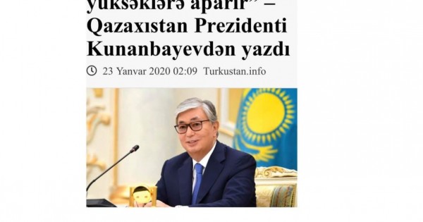 مەملەكەت باسشىسىنىڭ «Egemen Qazaqstan» گازەتىندە جارىق كورگەن «اباي جانە ءححى عاسىرداعى قازاقستان» اتتى ماقالاسى ازەربايجاندىق باسىلىمدا جاريالاندى. بۇل تۋرالى حالىقارالىق تۇركى اكادەمياسىنىڭ پرەزيدەنتى دارحان قىدىرالى Facebook پاراقشاسىندا جازدى.
