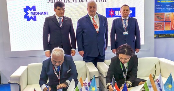 شارا بارىسىندا "وتمك" اق پرەزيدەنتى اسەم مامۋتوۆا مەن ءۇندىستان قورعانىس مينيسترلىگىنىڭ مەملەكەتتىك كاسىپورنى Mishra Dhatu Nigam Limited (MIDHANI) كومپانياسىنىڭ باسقارما توراعاسى دوكتور دينەش كۋمار ليكحي ىنتىماقتاستىق تۋرالى مەموراندۋمعا قول قويدى, ونىڭ شەڭبەرىندە تيتان بيويمپلانتتارى مەن مەديتسينالىق قۇرالدار ءوندىرىسى سالاسىنداعى ارىپتەستىك ىنتىماقتاستىق نىعايا تۇسپەك.