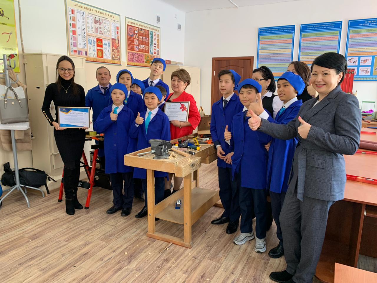 اعاش شەبەرحاناسىنا زاماناۋي شەبەر ۇستەل, «ۇشەۋى بىرگە» فۋنكتسياسى بار اعاش اراسى, بۇرعىلاۋ جانە قايراۋ ستانوكتارى, ەكى اجارلاعىش ماشينا, بىرنەشە ويۋ اراسى, بۇرعى, بۇراما شەگەنى بۇراعىش, شارقايراق, مەتالل جانە اعاش قول اراسى – جالپى 903 400 تەڭگە سوماعا بارلىعى 40-تان استام جابدىقتار ورناتىلعان. اعاش شەبەرحاناسىنداعى ساباقتاردى ۇلكەن جۇمىس تاجىريبەسى بار پەداگوگ ءادىل بەكبەرديەۆ جۇرگىزەدى. ونىڭ بالالاردى وقىتۋداعى جوسپارى ۇلكەن: ازىق-ت ۇلىك تۋرايتىن تاقتايلار, وتىرعىشتار, ۇستەلدەر جاساۋ, مەكتەپتىڭ اعاش جيھازىن جوندەۋ. قازىر مۇنىڭ بارلىعىن ساتىپ الۋعا نەمەسە تاپسىرىس بەرۋگە بولادى. بىراق, ءادىل جولداسباي ۇلى مۇنداي شەبەرحانا بالالاردىڭ وقۋدا نەعۇرلىم جيناقى جانە زەيىندى بولۋىنا كومەكتەسەدى دەپ سانايدى. سونداي-اق ەرەسەك ومىرگە پايدالى پراكتيكالىق داعدى الۋىنا كومەكتەسەدى, ولاردى جيھاز جيناۋعا, تۇرعىن ءۇي جوندەۋگە جانە بالكىم, بولاشاق كاسىبىندە قولدانۋعا مۇمكىندىك تۋادى.