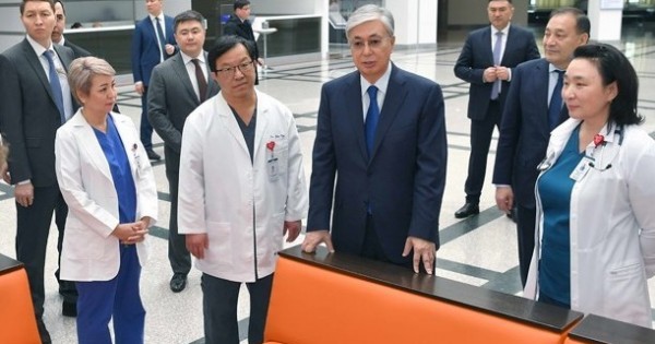 كەزدەسۋ سوڭىندا مەملەكەت باسشىسى مەديتسينا قىزمەتكەرلەرىنىڭ يگىلىكتى ىسىنە تابىس تىلەدى.