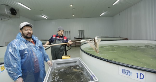 ء«بىز مەملەكەت باسشىسىنىڭ تاپسىرماسىن 100% ورىنداپ جاتىرمىز. بەكىرە تۇقىمداس بالىقتاردىڭ 3,5 ملن شاباعىن وندىرەمىز, تابيعات پايدالانۋشىلار ءۇشىن بەكىرە تۇقىمداس بالىقتىڭ 120 مىڭنان استام شاباعىن وندىرەمىز. زاۋىتتىڭ جۇمىسشىلارى تۋرالى ايتاتىن بولساق, بىزدە 78 ادام جۇمىس ىستەيدى. ولاردىڭ 60%-ى – بالىق شارۋاشىلىعىنىڭ ماماندارى», — دەدى اتىراۋ بەكىرە بالىق ءوسىرۋ زاۋىتىنىڭ ديرەكتورى راشيدەن قاليدۋللين.