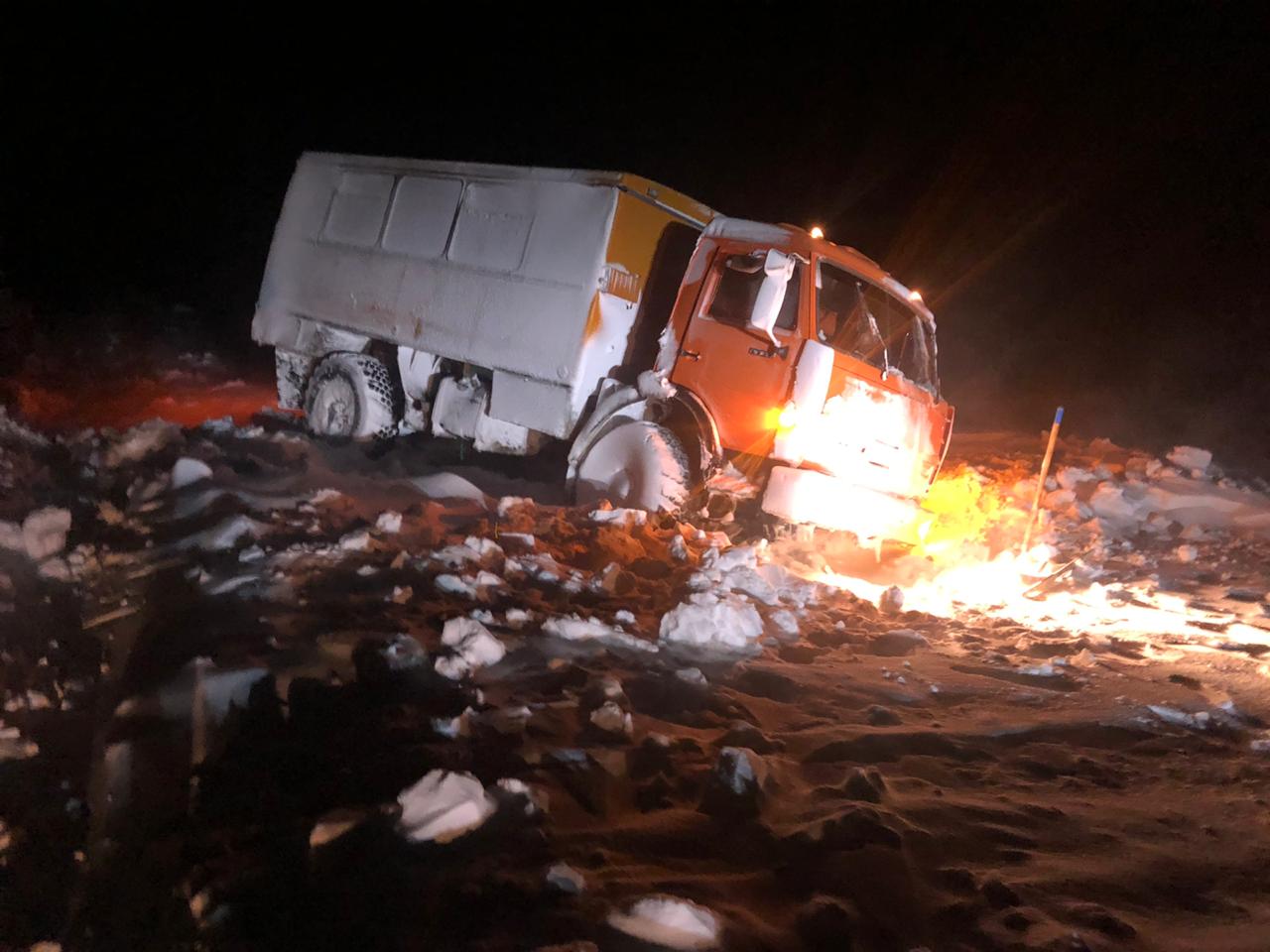 قۇتقارۋ توبى كەلگەن كەزدە ادامدار تاس جولدا 5 ساعاتتان استام ۋاقىت الىسىپ, كولىكتەرىن شىعارا الماعان. وزدىگىنەن قار قۇرساۋىنان شىعۋ ارەكەتى ءساتسىز بولعان سوڭ, MT-لب كوپ ماقساتتى ترانسپورتتاۋشىنى قولدانا وتىرىپ, كولىكتەر جولعا شىعارىلدى.