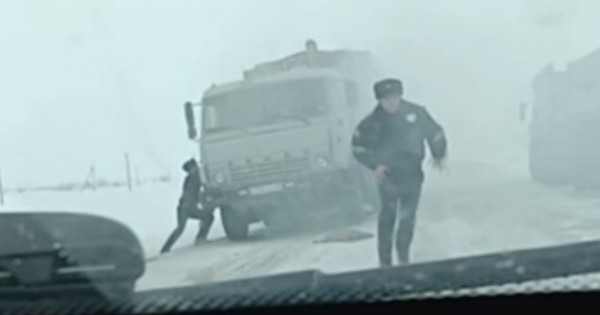 كولىكتىڭ 35 جاسار جۇرگىزۋشىسى موتور تارسىلداعان سوڭ ونى قىزىپ كەتكەن عوي دەپ ساناپ, اۆتوماشينانى ءسوندىرىپ, ءوزى جۇمىس ىستەيتىن جشس-عا حابارلاسىپ, كومەك شاقىرادى. ال شىعىپ تۇرعان كۇيىك يىسىنە ءمان بەرمەيدى. وسى كەزدە جول باقىلاپ جۇرگەن پاترۋلدىك پوليتسيا باتالونىنىڭ قىزمەتكەرلەرى جانبولات نۇعىمانوۆ پەن سامات جاقتاەۆ سىنعان كولىكتىڭ جانىنا كەلىپ توقتايدى. ولار ماشينانىڭ ماڭىنان كۇيىك ءيىسى شىعىپ جاتقانىن كورىپ, جۇرگىزۋشىگە كابينانى توڭكەرتەدى. سويتسە, موتورعا جاۋىپ قويعان كيىز بىقسىپ جانىپ, پلاستماسسا بولشەكتەر دە ەري باستاعان ەكەن. كيىزدى سۋىرىپ العاندا جالىن جارق ەتىپ, اسپانعا سۋماڭدايدى. ەكى پوليتسەي قاراپ تۇرماي, دەرەۋ ءوز ماشينالارىنان ورتسوندىرگىشتەر اكەلىپ, وتتى سوندىرۋگە كىرىسەدى. ءسويتىپ, قىراعى پوليتسەيلەردىڭ ارقاسىندا جۇك كولىگى مەن ونىڭ قورابىنداعى استىق تۇگەل جانىپ كەتۋدەن ساقتالىپ قالدى.