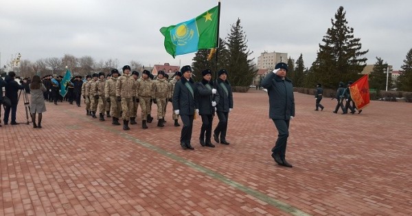 بۇعان دەيىن الماتى, قاسكەلەڭ, ۇزىناعاش, قاراكەمەر, تالدىقورعان, تاراز, شىمكەنت, تۇركىستان, قىزىلوردا, اتىراۋ, اقتاۋ جانە جاناوزەن قالالارىندا ورنالاسقان اسكەري بولىمدەردە بولعان جاۋىنگەرلىك تۋدى قارسى الۋ سالتاناتى ورال قالاسىنداعى جەڭىس الاڭىندا ءوتتى.