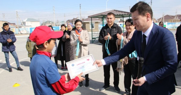 الەۋمەتتىك وسال توپ بالالارىن سپورتقا باۋلۋ ماقساتىندا وتكەن شارادا «قايسار» فۋتبول كلۋبىنىڭ ويىنشىلارى ەلدوس احمەتوۆ, دۋمان نارزىلداەۆ سايىسقا قاتىسۋشىلارعا ساتتىلىك تىلەپ, قولتاڭبالارى قويىلعان دوپتاردى سىيعا تارتتى.