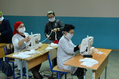 مىسالى, اسانباي اسقاروۆ اتىنداعى ورتا مەكتەپتىڭ ديرەكتورى شاكىر ايناقۇلوۆ مەديتسينالىق قورعانىس قۇرالدارىن تىگۋگە مۇعالىمدەردىڭ وزدەرى نيەت بىلدىرگەنىن ايتادى. شاعىن 10 تسەح ءبىر كۇندە 10 مىڭداي بەتپەردە تىگە الادى. بۇل ورايدا تۇلكىباس اۋدانىنىڭ اكىمى نۇربول تۇراشبەكوۆ يگى ىسكە قولداۋ كورسەتەتىن دەمەۋشىلەر تارتۋدا. قايىرىمدىلىق شاراعا كىرىسكەن اۋداندىق مەكتەپتەردىڭ ەڭبەك ءپانى مۇعالىمدەرى مەن تەحنيكالىق قىزمەتكەرلەرىنە جەرگىلىكتى تۇرعىندار مەن ەرىكتىلەر كومەككە كەلدى.