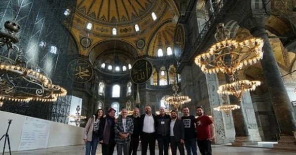 اكۋستيكالىق جازبا ءۇشىن ۇلكەن اياسوفيا مەشىتىنىڭ يمامى وندەر سوي جانە ۇلكەن ايا-سوفيا مەشىتىنىڭ ازانشىسى احمەت تورامان ايا-سوفيا كۇمبەزىنىڭ ءدال استىندا قوس داۋىستى ءارى مىنبەردە (سابا) ازان شاقىرىلدى. سونداي-اق, ميحرابتا ء«ال-فاتح» جانە «ناس» سۇرەلەرى ەشقانداي دىبىستىڭ سۇيەمەلدەۋىنسىز قاراپايىم داۋىسپەن وقىلدى. اتاپ ايتار بولساق, ايا-سوفيا مەشىتى تۇرىكتەرگە دەيىن ۆيزانتيا يمپەرياسىندا سوبور, كەيىن 500 جىل بويى (1935 جىلعا دەيىن) تۇرىكتەردىڭ ءدىني ورتالىعى قىزمەتىن اتقارعان. ول 1453 جىلى مەشىتكە اينالدىرىلعان كەيىن, عيماراتتىڭ ىشكى كورىنىسى قايتا كوركەمدەلەدى. حVI-XVIII عاسىرلاردا مەشىت مۇنارالارى مەن قوسىمشا قۇرىلىستارى سالىنادى. 1935 جىلى اتاتۇرىك ايا- سوفيانى مۋزەيگە اينالدىرعان. ءالى كۇنگە دەيىن مۋزەي قىزمەتىن اتقارىپ كەلەدى.