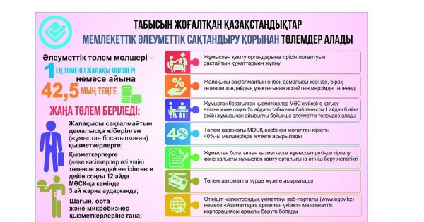بۇل ماسەلەدە ەكى نارسەنى جاقسى ءتۇسىنىپ العان دۇرىس. ءبىرىنشىسى, توتەنشە جاعداي كەزىندە ءماجبۇرلى تۇردە جالاقىسى ساقتالمايتىن دەمالىستا بولۋىنا بايلانىستى تابىسىن جوعالتقان قازاقستان ازاماتتارىنا تولەمدەر بەرىلەدى. ياعني ول ازاماتتار جۇمىستان ءبىرجولاتا بوساپ كەتكەن جوق, قازىرگى جاعدايعا بايلانىستى جالاقىسى تولەنبەيتىن دەمالىسقا جىبەرىلگەن. مۇنداي جاعدايدا ءبىر قىزمەتكەرگە 42,5 مىڭ تەڭگە كولەمىندە الەۋمەتتىك تولەم بەرىلەدى. ەكىنشىسى, جۇمىسىنان بوساتىلعان, جۇمىسسىز قالعان قىزمەتكەرلەرگە دە اقشا تولەنەدى. ياعني جوعالعان كىرىستىڭ 40 پايىزى مولشەرىندە تولەم بەرىلەدى. تولەم جاساۋعا بايلانىستى ءار وڭىردە جانە رەسپۋبليكالىق ماڭىزى بار قالالاردا ارنايى شتابتار قۇرىلعان. ول شتابتارعا جاڭا تولەمدى الامىن دەيتىن جۇمىس بەرۋشىلەر, تاعى دا قايتالاپ ايتامىن, جۇمىسكەرلەردىڭ وزدەرى ەمەس, تەك جۇمىس بەرۋشىلەر ءوتىنىش بەرەدى. شتابتار ول وتىنىشتەردى قاراپ, «ازاماتتارعا ارنالعان ۇكىمەت» مەملەكەتتىك كورپوراتسياسىنا وتكىزەدى. كورپوراتسيا تىزىمدەگى ازاماتتاردىڭ قۇجاتتارىن تۇگەندەپ, تەكسەرىپ, مەملەكەتتىك الەۋمەتتىك ساقتاندىرۋ قورىنا جىبەرەدى. تىزىمدەگى ازاماتتارعا بۇل الەۋمەتتىك تولەمدى بەرۋدىڭ دۇرىس نەمەسە بۇرىس ەكەنىن وسى قور ايتادى. وسى پروتسەستىڭ بارلىعى 7 جۇمىس كۇنىنىڭ ىشىندە اتقارىلۋى ءتيىس.
