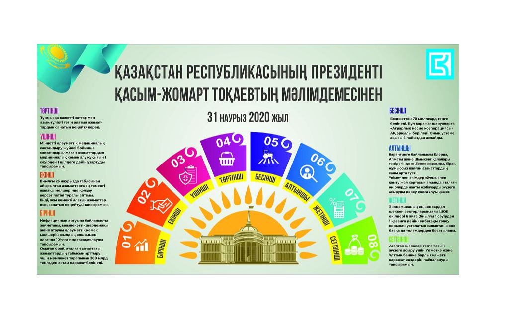 دەگەنمەن دە ءبىز سان قيلى زاماندى باستان كەشىرگەن, قانداي قيىن كۇن بولسا دا ەلدىگىمىزدى جوعالتپاعان حالىقپىز. ەلىمىز بۇل كۇنگە بەرەكەلى بىرلىگىمەن, تياناقتى تىرلىگىمەن جەتتى. ەندى وسىناۋ قازىنامىزدى, وسىناۋ بەرەكەمىزدى ءبىر جۇتتا جوعالتىپ الماۋىمىز قاجەت. جاسىراتىنى جوق, جۇرت وسى كۇندەرى ىندەتتىڭ لاڭىن, دەنساۋلىعىن, اماندىعىن ءبىر ۋايىمداسا, كۇندەلىكتى تىرشىلىگىن, كاسىبىن, شارۋاسىن ەكى ۋايىمدادى. ارينە «ەڭ باستى بايلىق – دەنساۋلىق» دەسەك تە, وسىناۋ قىسىلتاياڭ ساتتە كاسىبىن امالسىز توقتاتىپ, شارۋاسىن شاشىراتىپ الۋ ادامداردىڭ ەرتەڭگە دەگەن سەنىمىن دە ويرانداپ جىبەرەتىنى انىق. توتەنشە جاعدايعا بايلانىستى جۇمىسىنان ايىرىلۋ, ناپاقاسىنان قاعىلۋ, تابىسىن جوعالتۋ, مۇنىڭ ءبارى جۇرتتىڭ ەڭسەسىن تىپتەن ەزە تۇسكەنى جاسىرىن ەمەس.