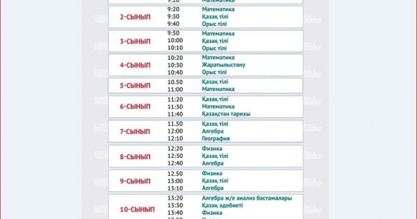 بەينەساباقتار قازاق تىلىندە دۇيسەنبى-جۇما كۇندەرى ساعات 09:00-دەن باستاپ 17:00-گە دەيىن 1-11 سىنىپ وقۋ پəندەرى بويىنشا «Balapan» تەلەارناسىنان كورسەتىلەدى. تەلەارنانى www.balapan.tv رەسمي سايتى مەن «Qazaqstan.tv» ءموبيلدى قوسىمشاسىنان ونلاين كورۋ مۇمكىندىگى بار.