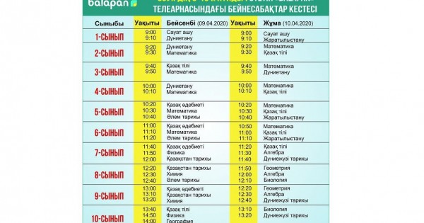 مەكتەپ وقۋشىلارىنا 9-10 ساۋىرگە ارنالعان بەينەساباقتار كەستەسى