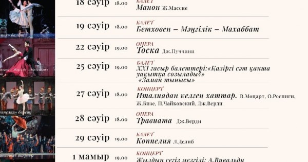 «استانا وپەرا» تەاترى 10 مامىرعا دەيىن كورەرمەن نازارىنا جالپى سانى 14 سپەكتاكل ۇسىنادى.