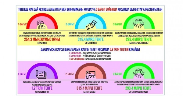 توتەنشە جاعداي كەزىندە ازاماتتار مەن ەكونوميكانى قولداۋعا ءۇش باعىت بويىنشا قوسىمشا شىعىستار قاراستىرىلعان.