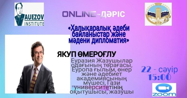 قازۇۋ-دىڭ فيلولوگيا جانە الەم تىلدەرى فاكۋلتەتى قازاق ادەبيەتى جانە ادەبيەت تەورياسى كافەدراسى م.و. اۋەزوۆ اتىنداعى ادەبيەت جانە ونەر ينستيتۋتىمەن بىرگە «100 كىتاپ» جوباسى اياسىندا ەۋرازيا جازۋشىلار وداعىنىڭ توراعاسى, ەۋروپا عىلىم, ونەر جانە ادەبيەت اكادەمياسىنىڭ مۇشەسى, گازي ۋنيۆەرسيتەتىنىڭ وقىتۋشىسى, جازۋشى ياكۋپ ومەروعلۋمەن ونلاين جۇزدەسۋ وتكىزدى.