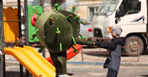بالالاردىڭ كەيبىرى كوروناۆيرۋس كەيپىندەگى قۋىرشاقتى توسىرقاپ قاشقاقتايدى. ال, كەيبىرى ەلىگىپ ويناعىسى كەلەدى. سول كەزدە داۋىس زورايتقىش ىسكە قوسىلادى.