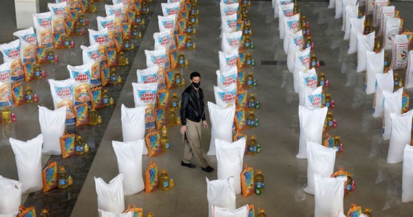 سۋرەتتە كابۋل قالاسى تۇرعىندارىنا بەرىلەتىن ازىق-ت ۇلىك سەبەتى قاز-قاتار تىزىلگەن. ونىڭ قۇرامىندا ءبىر قاپ ۇن, 10 كەلى كۇرىش, 5 ليتر سۇيىق ماي جانە سۇيىق سابىن بار. وسى ازىق-ت ۇلىك سەبەتىندەگى ۇننىڭ باسىم بولىگى قازاقستاننان جەتكىزىلگەن.