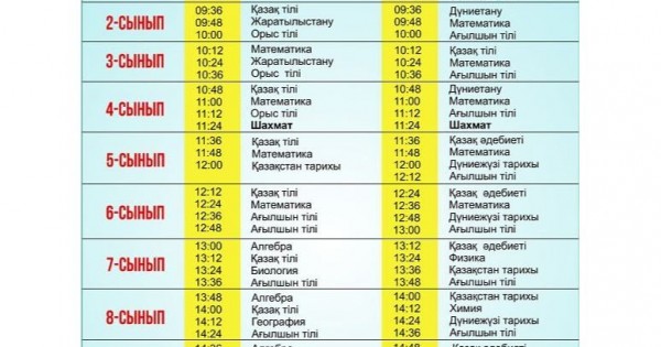 بەينەساباقتار قازاق تىلىندە سارسەنبى جانە بەيسەنبى كۇندەرى ساعات 09:00-دەن باستاپ 17:00-گە دەيىن 1-11 سىنىپ وقۋ پəندەرى بويىنشا «Balapan» تەلەارناسىنان كورسەتىلەدى. تەلەارنانى www.balapan.tv رەسمي سايتى مەن «Qazaqstan.tv» ءموبيلدى قوسىمشاسىنان ونلاين كورۋ مۇمكىندىگى بار.