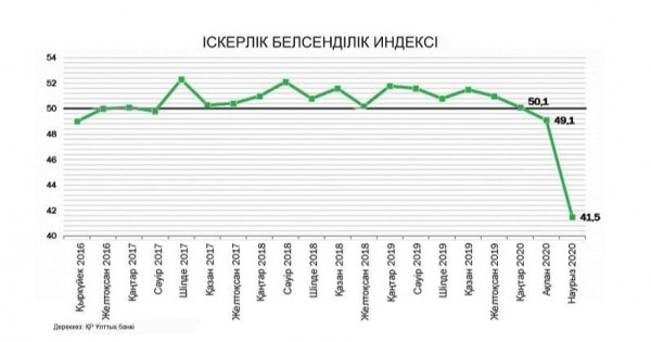 ناۋرىز ايىندا ەلدەگى ىسكەرلىك بەلسەندىلىك كوپ جىلدان بەرى بولىپ كورمەگەن دەڭگەيگە قۇلدىرادى. كاسىپكەرلەر ەكونوميكانىڭ ەڭ ماڭىزدى سەكتورلارىنىڭ كوبىندە جاعداي كۇردەلى ەكەنىن ايتادى. ەلەكتروندى كوممەرتسيانىڭ ءوزى بيزنەسكە كارانتين شارالارىنىڭ تيگىزىپ جاتقان تەرىس اسەرىن تەجەي الماي, بۇرىنعى تابىس كوزدەن بۇلبۇل ۇشتى.