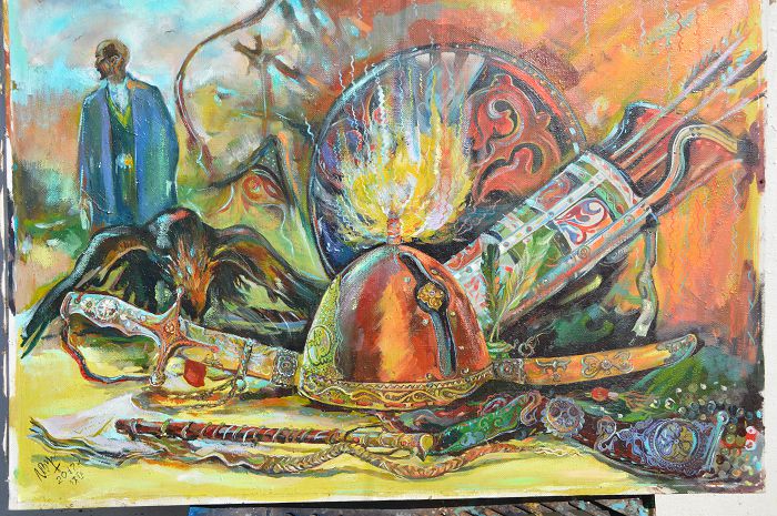 مىنە, سول ساتتەن باستاپ بولاشاق سۋرەتشىنىڭ مايدان تاقىرىبىنداعى سۋرەتتەرى سالىنا باستادى دەسە دە بولعانداي. العاشقى سۋرەتى «رەيحستاگ» دەپ اتالدى. قۇزعىنداردىڭ ۇياسىنىڭ قاۋساي قيراعان ءساتى. تورتكۇل دۇنيە تاعاتسىزدانا توسقان جەڭىستىڭ اتويلاعان كورىنىسى. سودان باستاپ ءبىر ادەمى قيال العا قاراي جەتەلەدى دە وتىردى. تۇلا بويلارىنان پاراسات لەبى, ورلىك پەن باتىرلىقتىڭ سورابى ايقىن اڭعارىلىپ تۇراتىن جامپوز جاۋىنگەرلەردىڭ ماڭگى ولمەس اسىل بەينەسى كەيىنگى ۇرپاقتى ءدال سونداي بيىك مۇراتتارعا جەتەلەسە, عانيبەت ەمەس پە؟!