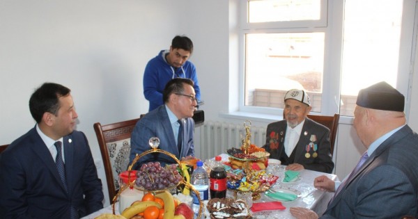 تۇركىستان وبلىسى اكىمىنىڭ ورىنباسارى جولدىمۇرات امانباەۆ, تولەبي اۋدانىنىڭ اكىمى باۋىرجان وماربەكوۆ, اۋداندىق ارداگەرلەر كەڭەسىنىڭ توراعاسى ءاتىرحان شىڭعىسباەۆ ەكىنشى دۇنيەجۇزىلىك سوعىستا جەڭىسكە ۇلەس قوسقان مايدانگەردى جاڭا باسپاناسىمەن قۇتتىقتاپ, ارنايى سىي-سياپات جاسادى. بۇعان دەيىن لەنگىر قالاسىندا جەر ۇيدە بالا-شاعاسىمەن بىرگە تۇرىپ كەلگەن 99 جاستاعى اقساقال 9 ۇل-قىزىنان 50-گە جۋىق نەمەرە, شوبەرە, شوپشەك ءسۇيىپ وتىر.