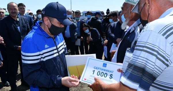 پرەمەر-مينيستر اسقار مامين وبلىس اكىمى ومىرزاق شوكەەۆپەن بىرگە تۇركىستان وبلىسى ماقتاارال اۋدانى مىرزاكەنت كەنتىندە اۋىل تۇرعىندارىمەن كەزدەستى. وندا ەۆاكۋاتسيالانعان ماقتاارالدىقتاردىڭ العاشقى لەگى الىشەر ۋسمانوۆتىڭ قورىنان بولىنگەن قور قاراجاتىنىڭ سەرتيفيكاتىن الدى.
