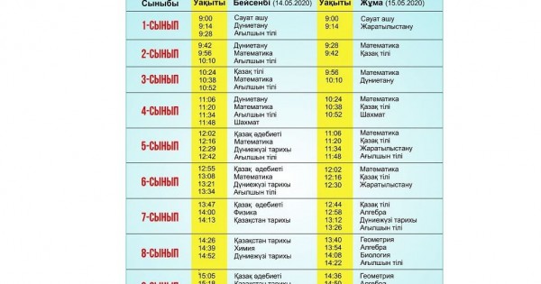 مەكتەپ وقۋشىلارىنا 14-15 مامىرعا ارنالعان بەينەساباقتار كەستەسى