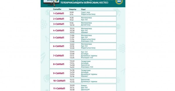 ء بىلىم جانە عىلىم مينيسترلىگى 15 مامىردا وتەتىن تەلەساباقتاردىڭ كەستەسىن جاريالادى.
