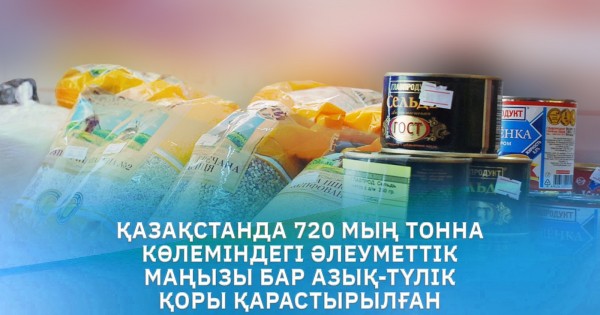 سونىمەن قاتار 351 ملن دانا جۇمىرتقا, 3,8 ملن توننا ازىق-ت ۇلىك بيدايى بار. ەلىمىزدە الەۋمەتتىك ماڭىزى بار ازىق-ت ۇلىك تاۋارلارىنىڭ قورىنىڭ جالپى كولەمى 719,4 مىڭ توننا, ونىڭ ىشىندە ۇن – 147,7 مىڭ توننا, كارتوپ – 121,5 مىڭ توننا, كۇرىش – 98,7 مىڭ توننا, ماكارون – 17,6 مىڭ توننا جانە ت.ب.