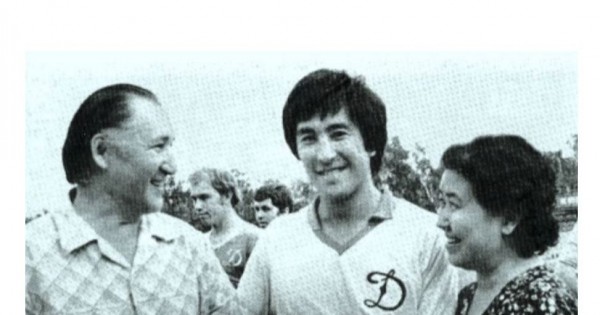سۋرەتتە: كوگالداعى حوككەيدىڭ شەبەرى سايان شايمەردەنوۆ اكەسى سافۋان جانە اناسى باعداتپەن بىرگە