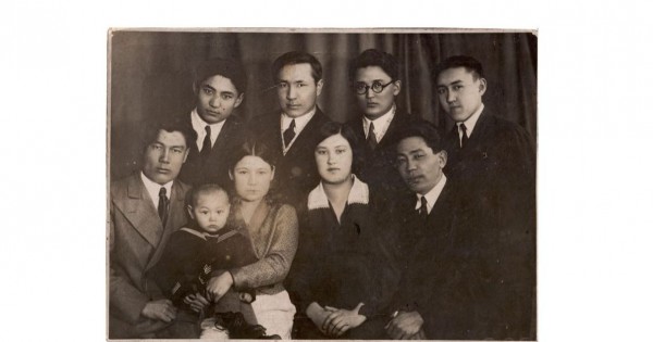 سۋرەتتە: (سولدان وڭعا قاراي): ءبىرىنشى قاتاردا – تايىر جاروكوۆ, مارات عادىلشە ۇلى, ..., جۇبايى زەينەگۇل ماداليەۆا, ...; ەكىنشى قاتاردا – عادىلشە اياپبەرگەنوۆ, اسقار توقماعانبەتوۆ, حامزا ەسەنجانوۆ, باتىربەك ءبىرىمجانوۆ. 1934 ج. (سۋرەت الماتى قالالىق تاريحي-ولكەتانۋ مۋزەيىندە ساقتاۋلى.)