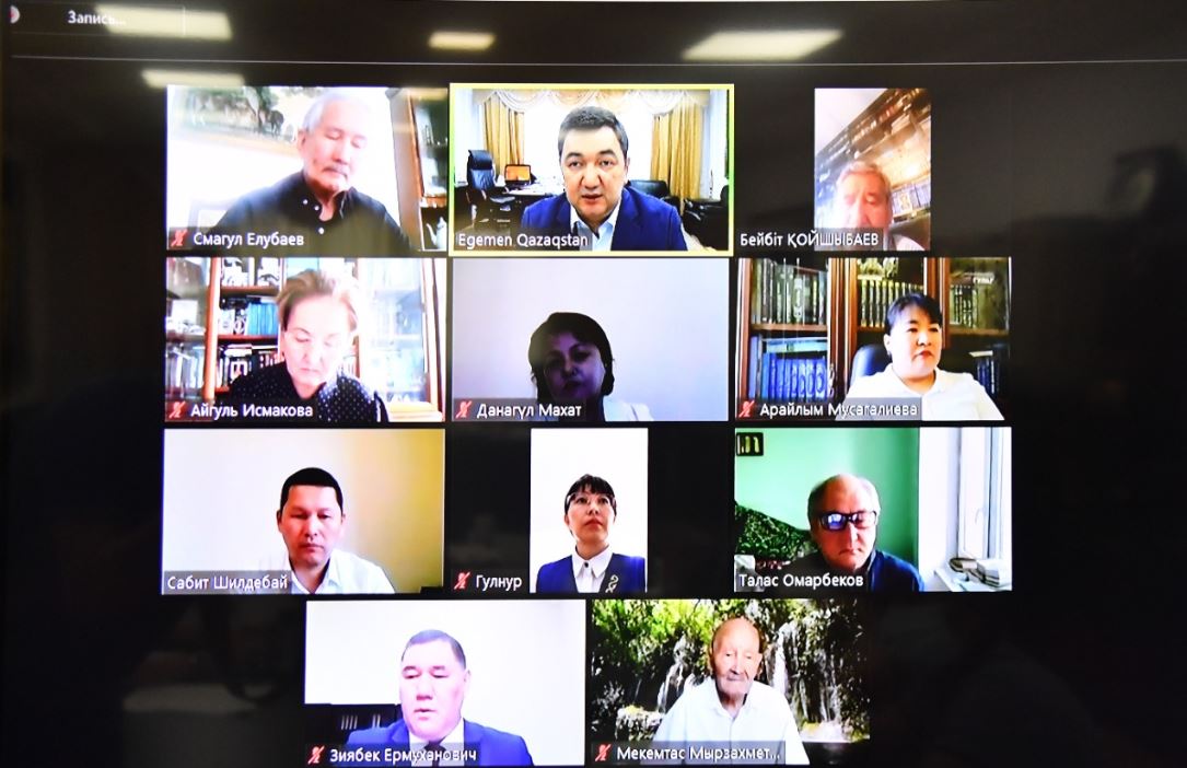 ونلاين جيىنعا فيلولوگيا عىلىمدارىنىڭ دوكتورى, پروفەسسور مەكەمتاس مىرزاحمەت, الاشتانۋشى, تاريح عالىمدارىنىڭ دوكتورى, پروفەسسور, اكادەميك مامبەت قويگەلديەۆ, جازۋشى سماعۇل ەلۋباي, عالىم تالاس وماربەكوۆ, تاريح عالىمدارىنىڭ دوكتورى قايدار الداجۇمانوۆ, جازۋشى, پۋبليتسيست, تاريح عىلىمدارىنىڭ كانديداتى بەيبىت قويشىباەۆ, ش.ءۋاليحانوۆ اتىنداعى تاريح جانە ەتنولوگيا ينستيتۋتىنىڭ ديرەكتورى زيابەك قابىلدينوۆ, فيلولوگيا عىلىمدارىنىڭ دوكتورى, پروفەسسور ايگۇل ىسىماقوۆا قاتىستى.