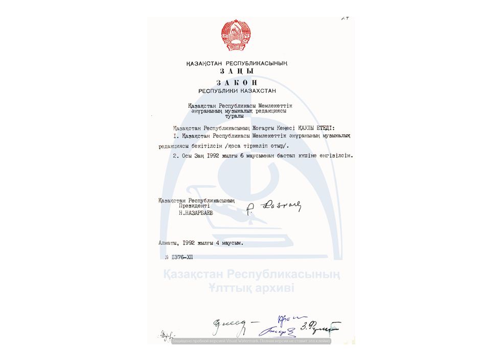 قازاقستان رەسپۋبليكاسى مەملەكەتتىك رامىزدەرى كۇنىنە وراي قازاقستان رەسپۋبليكاسىنىڭ ۇلتتىق ءارحيۆى قورلارىندا ساقتالاتىن ەگەمەندى قازاقستاننىڭ باستى اتريبۋتتارى – تۋ, ەلتاڭبا, ءانۇراننىڭ قالىپتاسۋ تاريحىنان سىر شەرتەتىن قۇجاتتار توپتاماسى ۇسىنىلادى.