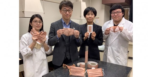 جاپون مەملەكەتتىك مەكەمەسىنىڭ فەيسبۋكتەگى رەسمي پاراقشاسىندا بۇل تۋرالى: «NIH (National Institutes of Health – اقش-تاعى ۇلتتىق دەنساۋلىق ينستيتۋتىنىڭ زەرتتەۋ قورىتىندىسى COVID-19 ۆيرۋسىنىڭ پلاستيك بەتىندە 3 كۇن, مىستىڭ بەتىندە نەبارى 4 ساعات ءومىر سۇرە الاتىنىن كورسەتتى. سودان سوڭ عالىمدار فوتوكاتاليتيك سپين ادىسىمەن مىستىڭ ۆيرۋسقا قارسى قابىلەتىن كۇشەيتتى. ءارى قاراي زەرتتەۋشىلەر مەيسەي تىگىن كومپانياسىمەن بىرلەسە الدىمەن مىستان ءجىپ, كەيىن ماتا جاساپ شىقتى. سول ماتادان ماسكالار مەن باسقا دا قاجەتتى زاتتار تىگىلدى», دەپ جازىپتى.