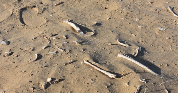 قۇم باۋرايىنا ءبىزدى باستاپ كەلگەن اقساقال بەلگىلەنگەن جەردىڭ ءبىرىن كۇرەك سالدى. ءا دەگەننەن-اق وسىدان 3 مىڭ جىل بۇرىن جاعىلعان سەكسەۋىلدىڭ ك ۇلى تابىلدى. سالدەن كەيىن وشاقتىڭ ءبىر قابىرعانى ايقىندالدى. ءار جەردەن قۇمىرالار سىنىقتارى مەن اقسوڭكە بولعان ادام سۇيەكتەرى كوزگە شالىنادى. ەستە جوق ەسكى زاماندا وتكەل بولعانى بايقالاتىن جولدان وتە بەرە شىققان جالدان شەتى كەتىلگەن تاس جەبە تاپتىق.