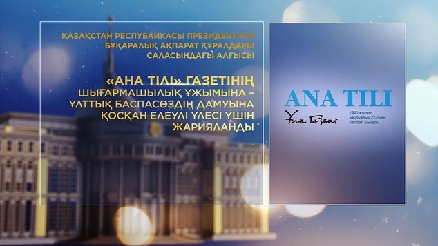 "انا ءتىلى" گازەتىنىڭ شىعارماشىلىق ۇجىمىنا – ۇلتتىق ءباسپاسوزدىڭ دامۋىنا قوسقان ەلەۋلى ۇلەسى ءۇشىن;