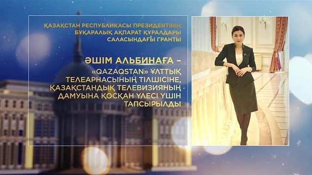 ءاشىم البيناعا – "QAZAQSTAN" ۇلتتىق تەلەارناسىنىڭ تىلشىسىنە, قازاقستاندىق تەلەۆيزيانىڭ دامۋىنا قوسقان ۇلەسى ءۇشىن;