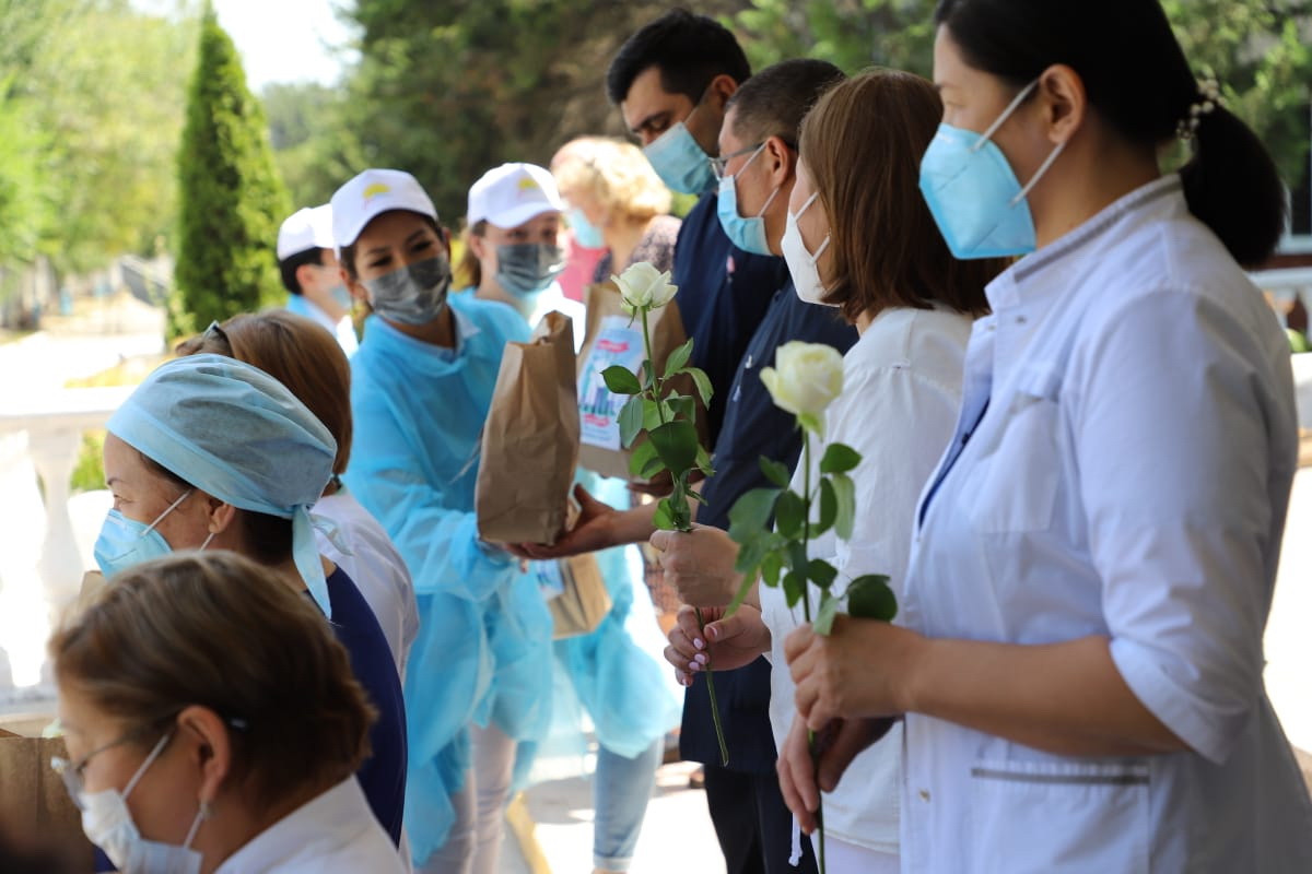 جاسوتاندىقتار باستاعان ەرىكتىلەر 800-دەن استام دەنساۋلىق سەبەتىن مەديتسينا قىزمەتكەرلەرىنە ۇلەستىرىپ ۇلگەردى. الماتى قالاسى بويىنشا كوروناۆيرۋستىڭ الدىن الۋ جانە ۆەدومستۆوارالىق كوميسسياسىنىڭ قولداۋ كورسەتۋىمەن جۇزەگە اسقان جوبانىڭ العاشقى كۇنى مەگاپوليستەگى ءۇش بىردەي ىرگەلى اۋرۋحانانىڭ قىزمەتكەرلەرى قولداۋ پاكەتىنە يە بولدى. جيىنتىق يممۋنيتەتتى نىعايتۋعا ارنالعان ونىمدەردەن قۇرالعان. ايتۋلى ناۋقان الداعى 4-5 كۇن بويى جالعاسىن تاباتىن بولادى.